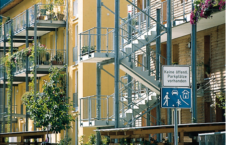 All the new buildings are built with low energy standard. Around 100 houses will are going to be passive houses that do not need conventional heating systems: the heat requirements are almost entirely covered by so-called internal gains, passive-solar gains and a technically simple heat recuperation system. 10 units of so called “plus energy houses” (houses which – in the average – produce more energy than they need) were built up to December 2000 by an investor. The investor hopes to sell between 100 and 200 more of these houses within the solar settlement which is part of the Vauban area.