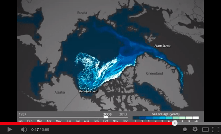 Participants to the the annual meeting of AAAS (American Association for the Advancement of Science) last saturday, gasped as they were shown this one minute video compressing 25 years of satellite data of Arctic Ocean ice retreat. When climate change, and as its most severe part of it, Arctic warming and ice retreat, has been a scientific evidence for years, a simple time lapse video is able to provoke a shock in a meeting of people that have probably read loads of reports and are already aware of the situation. This video is powerful call to action and a tool to raise awareness about the real situation of Arctic ice retreat.